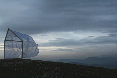 Almost immaterial spaces, created from wind through the body. "Having it all (freedom) without having almost anything", as an alegory of this element. A reinterpretation of the idea of habitat in a more essential way.