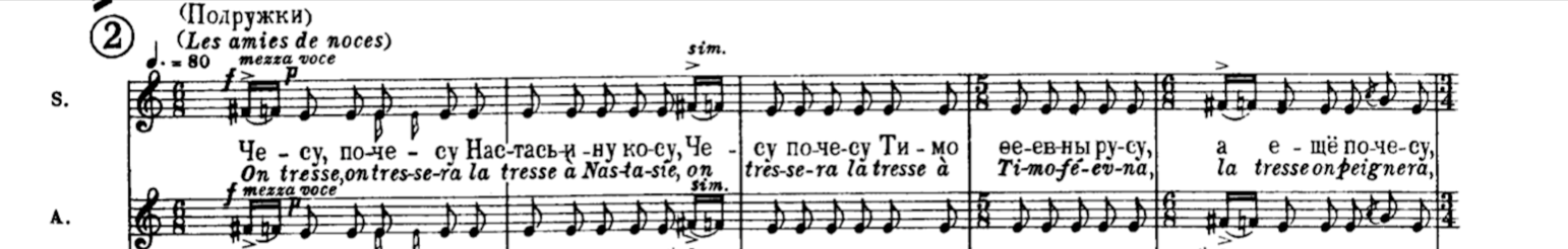 The composer himself outlined that “Svadebka (Les Noces) is nothing other than a symphony of the song-like quality of Russian melos and of Russian speech.”12