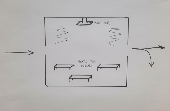 The envisioned performance would be approximatively 10-15 minutes and would happen on a loop, ending and commencing anew.