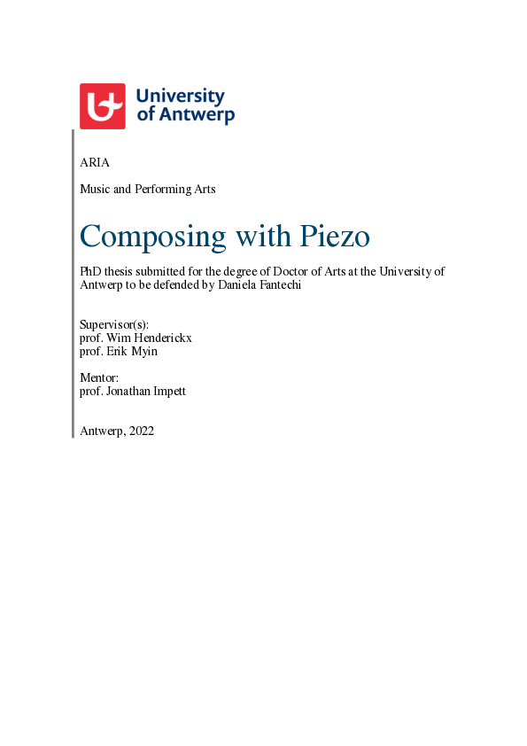 Composing with piezo is the title of my research which concerns the composition of instrumental music implemented with a specific use of piezoelectric microphones - low cost and low fidelity1 contact microphones. During the research process, I explored a peculiar use of this technology not only to disclose and amplify the instrumental sound but also to produce otherwise unheard sounds, through a reinterpretation of some instrumental gestures, such as glissando, tapping, scraping, etc, produced by playing with the microphone directly on the instrument. Mainly because of the non-linear quality of unprocessed piezoelectric microphones, which thus present limits and different degrees of controllability and predictability - their introduction in my compositional work changed the relationships with the instrumental sound matter, bringing to question different aspects of my compositional approach. Therefore, during the whole research process, I looked for frameworks, theories, and examples, to understand and bring focus to my evolving compositional practice.