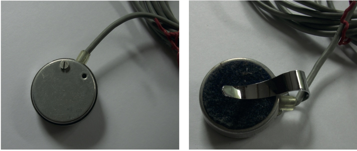 Karlheinz Stockhausen explored live electronic processing with his pivotal work, Mikrophonie I (1964), first premiered on December 9th, 1964 in Brussels. The piece is the result of Stockhausen's experiments, in the summer of 1964, on the large tam tam that he had previously bought for Momente. As the only sound source, the tam tam is excited with objects of different materials, such as glass, cardboard, metal, wood, rubber and plastic. All performed actions are amplified with a highly directional microphone and then processed in real-time. The six performers are divided into three symmetrical groups: the first two play different actions with various objects on the tam-tam, the second two manipulate the microphones, while the third pair modulate the microphones' sound with a filter and a potentiometer. In the score1 Stockhausen specifies different degrees of distance of the microphone from the tam-tam surface and from the point of excitation generated by the object used to play the instrument. Those parameters affect the clarity and the timbre of the sound, in much the same way physical location affects the sound heard through a contact mike. The difference between the sound input of the actual source, and its output through the loudspeakers, has been defined by Stockhausen the “microphonic process” (Maconie and Stockhausen, 2010, 78). Not even in the previous twelve years spent working in the electronic music studio, Stockhausen experienced such an unusual sound world. Maybe as a direct consequence, with the help of Jaap Spek, the technician at Cologne’s WDR radio, Stockhausen had started to use contact microphones (fig.1.7.1)2 to amplify metal and string sounds in many pieces of the same period, such as Mixtur (1964), Prozession (1967), or Kurzwellen (1968).3 The latter two were performed several times by the composer and violist Johannes Fritsch, who was part of the Stockhausen Ensemble (1964-1970), together with Rolf Gehlhaar. Fritsch and Gehlhaar continued to experiment with contact mics also after they left Stockhausen's group and formed the Feedback Studio (active between 1971 and 2001). Gehlhaar remembers Fritsch using a piezoelectric contact microphone model by Schaller for his piece Partita (1966) for amplified viola and tape delay: