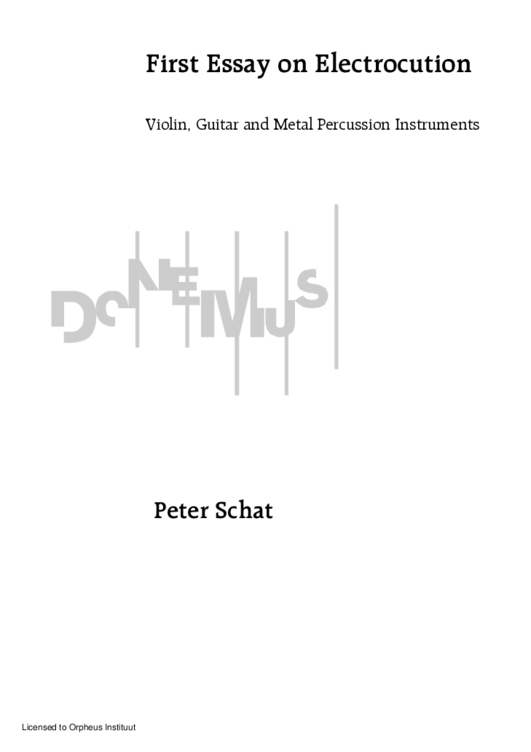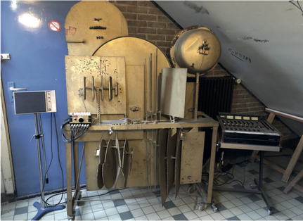 In the scene of the over-mentioned movie, the fragment played in the concert was probably an improvisation or a part of an open-form piece, such as the one published in 1967 by Donemus. The latter, titled First Essay on Electrocution, for violin, guitar and metal percussion instruments (3 players), seems to be a work in progress, as can be deduced from Schat's request to settle the fee, unusually written in the score, right before the technical notes6. A statement later in the technical notes – “it is the best to use the Artaudofoon for the performance […] it is, however, also possible to use cymbals and other metal percussion instruments, the sound of which is scanned with contact microphones” – suggests that Schat was becoming aware of the difficulties in the use of the Artaudofoon. Soon, in fact, the project was abandoned and the Artaudofoon was forgotten. One part of it is still archived at STEIM, as documented by the pictures taken by Nico Bes (fig.1.9.2).
