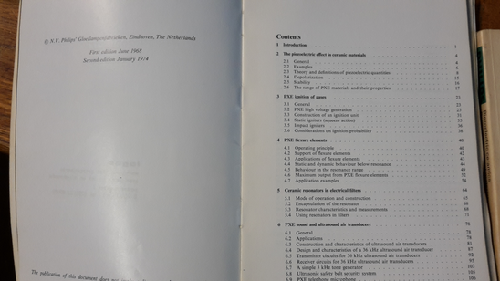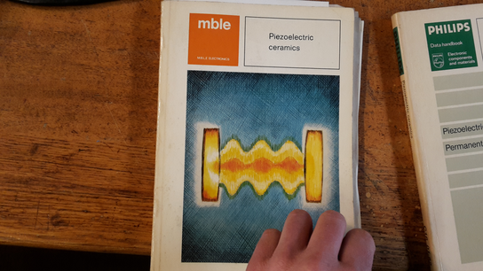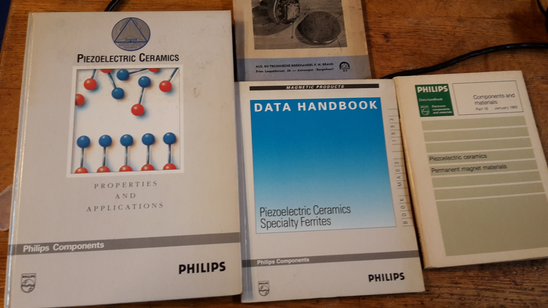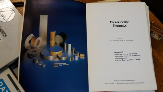 GWR: Yes because we used them as contact microphones at the beginning of Logos, at the end of the 60s. And then only, I think, by the end of the ‘70s, piezo disks with the copper came. Only at the end of the ‘70s. We can look it up, this is the book by one of the producers, and it gives applications of these piezo disks, so if we look at the dates, …’68, but the second edition of '74. And this is the report from the producers, from the factory. I was studying these materials (fig.2). The brass-bond piezo was not on the market when this book came out. It just describes the piezo electric material itself, the new ones that are not hygroscopic. As soon as they came out they started experimenting with it. Contact microphones were sort of trivial application, but my research was very much into what you could do with piezos if you go beyond audio, because they are very good for ultrasound. I used them a lot in the range of 20kHz and 70kHz.