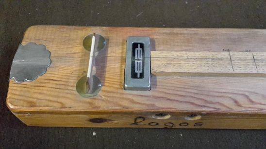 Look, this is from ’71: It’s a monochord (fig.7), but look: it has electromagnetic transducer and piezo and two outputs, so you can have both things connected. One out is for the two piezos - they are mixed internally - the other one is for the microphone, a magnetic transducer, from an electric guitar. This is an early application and the bridge is just on the piezos, without touching in the middle. There’s a pre-amp in the circuit.