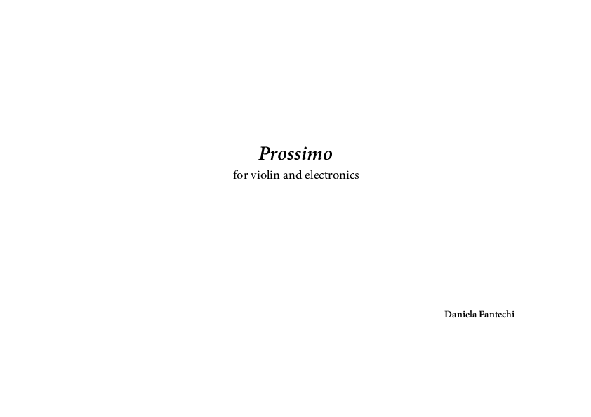 Prossimo for violin and electronics, was written during the artistic residence St.A.i.R Styria Artist in Residence Program by Steiermark - Österreich, in Graz, between February and April, 2017. The piece was written taking advantage of the support of the violin player Lorenzo Derinni, and the electronic performer Davide Gagliardi, both from Schallfeld Ensemble. The piece was premiered at Schaumbad Freies Atelierhaus, in Graz, on April 23rd, 2017.