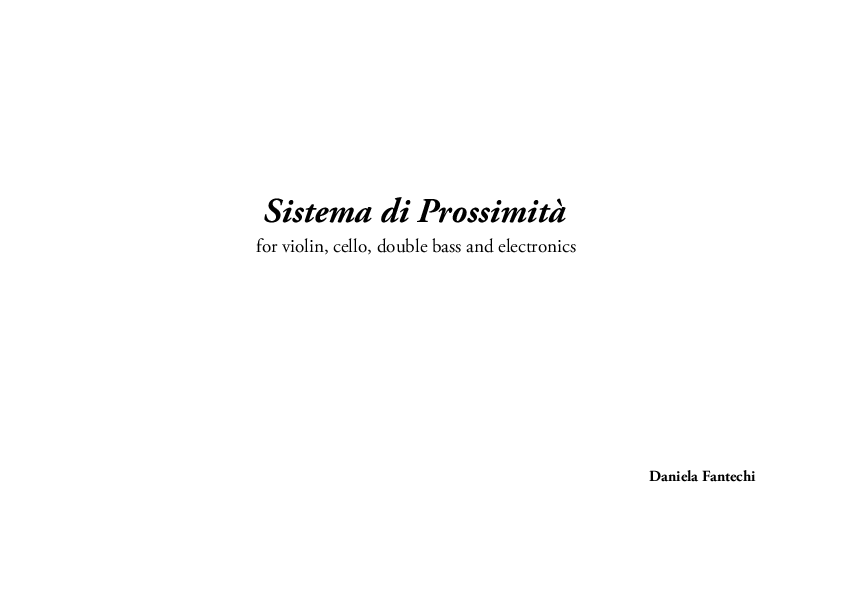 - Sistema di Prossimità, for violin, cello, double bass and electronics.