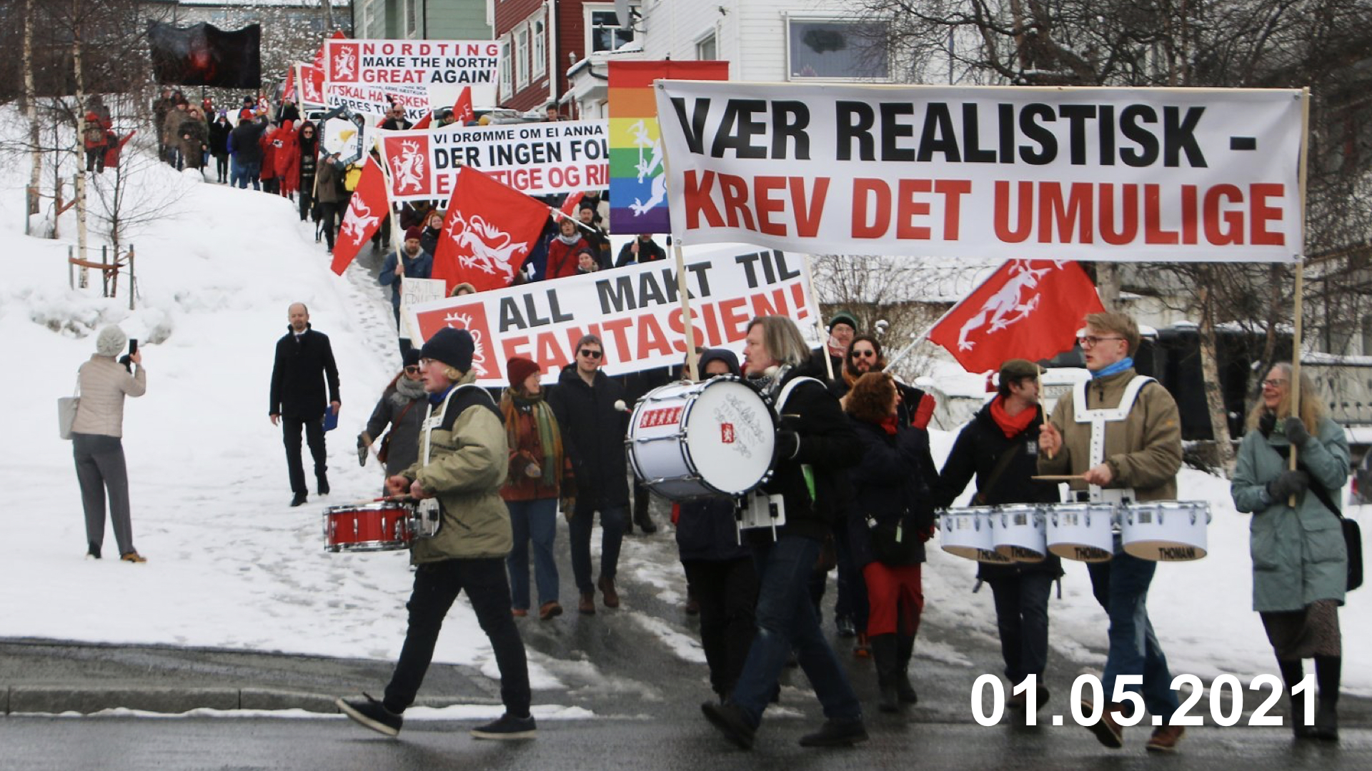 Senere har NORDTING delvis forlatt kunstrommet helt og holdent, som da NORDTING arrangerte █ 1. mai-tog i Tromsø nå i år. Vi kalte det for ´interaktivt vandreteater´, og det var det naturligvis. Men det var også et helt reelt 1. mai-tog, nesten det eneste som ble arrangert i Norge i 2021 — siden de offisielle togene var korona-avlyste.