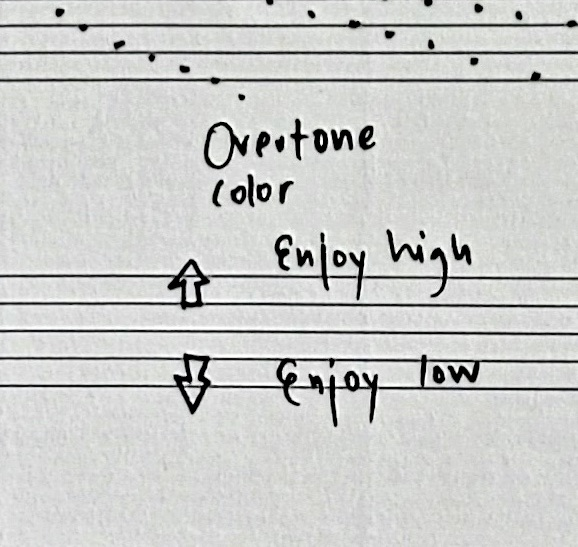 Materials from the improvisation I notate then trickles into the following sketches, as the overtone color arrows.