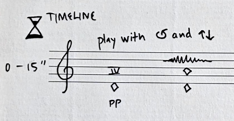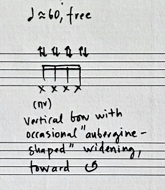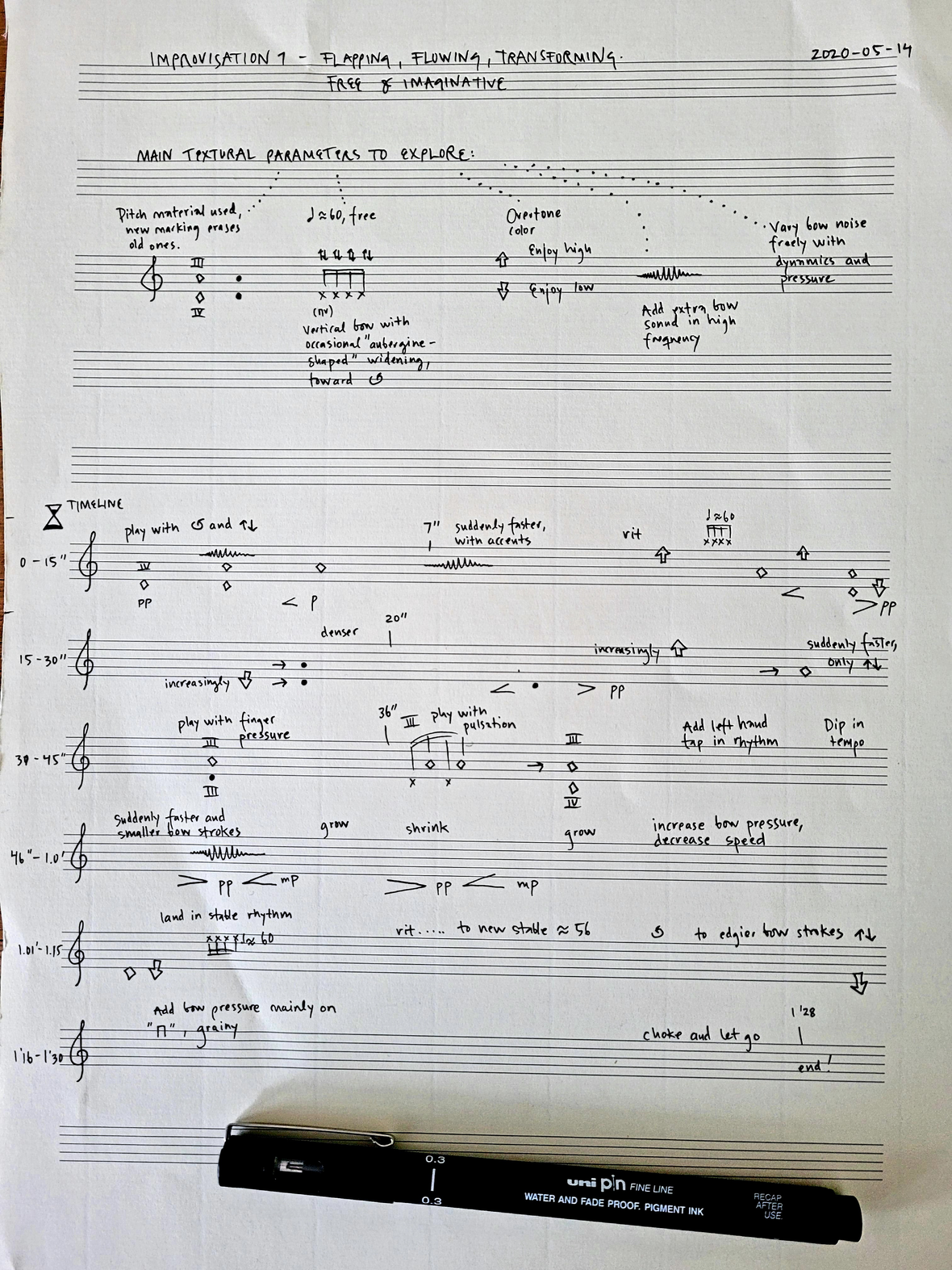 Henrik, email: «I noticed how you liked the notation that was not so exact but more describing changes in bowing techniques, giving you more freedom with timing and pitch. Is that right? Good for me to think about whole passages in that way in the next phase.»