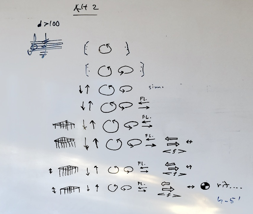 The differences between our artistic languages are put in focus when aiming to render explicit the knowledge that resides in the artistic palette. Unsurprisingly, notation, and the ways in which I can communicate my tacit, embodied knowledge to Henrik is the first area in which a challenge manifests itself.