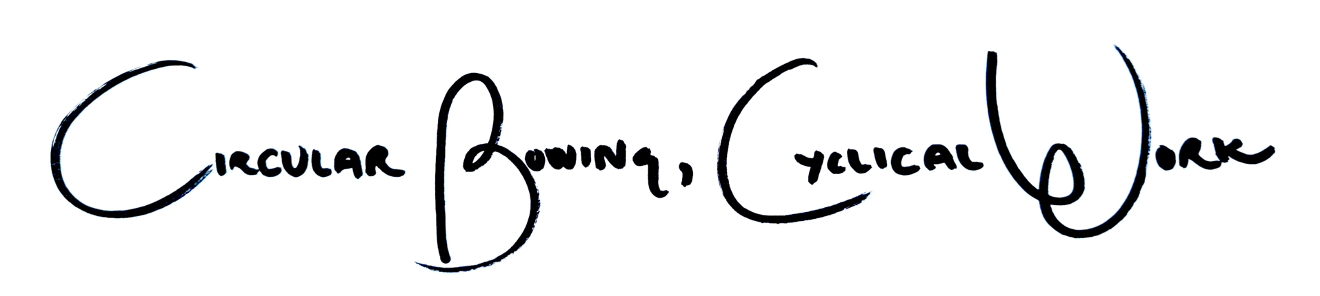 The cyclical work methods that emerge are mirrored in our explorations of bowing techniques drawing circles over the violin’s strings, itself a way to challenge the habitual way of producing sound on the instrument. What happens when we break with the convention of a heel-to-tip bow-stroke? The exploration provides a surface for knowledge exchange.