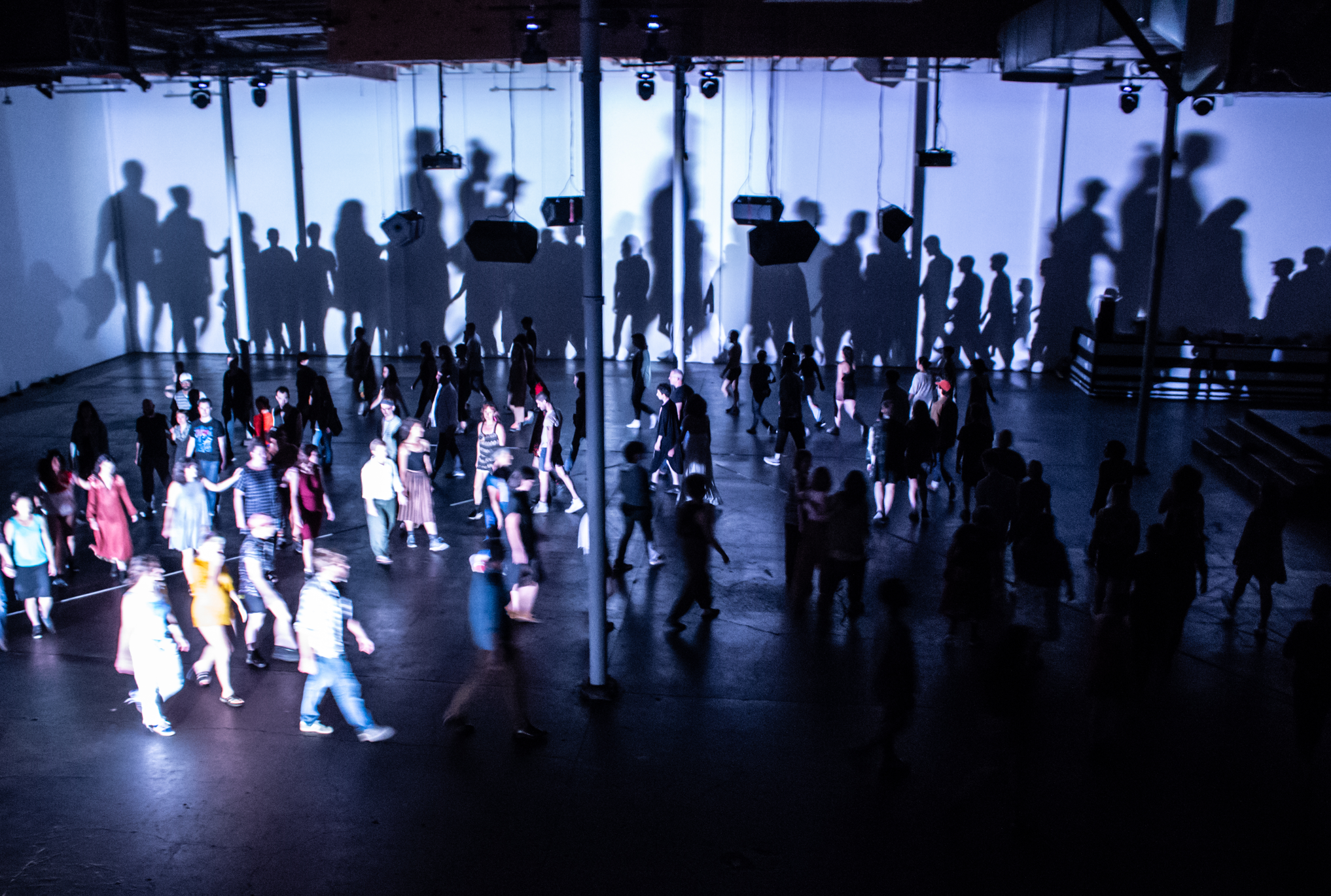 Mia Habib: And the title, in some places works and in some places is maybe provocative like, “who is all? What does that mean?” In some ways, I have a problem with the title and I’d like to keep it that way. It doesn’t add up in a way. What for me is very exciting with this work is the fact that the work changes depending on every place in which it comes in contact with. For me, it’s research. It can be 10 minutes long, or for longer. Here, we’ll try it for 3 hours at PICA. So one, it’s the duration. The second, is the placing of the audience—we’ve done different things, looking frontally at the work, around the work, or seated inside it. And third is place—it can be in a gallery, as part of a protest, and then in other public spaces. We never know the work before it happens; so, in that sense it’s a premiere each time. It touches an urgency that occurs in public manifestations. You know, you don’t rehearse public manifestations—you can facilitate. You’ll see, it’s quite formal, with a clear shape. That also relates to calling it a physical poem—creating this distance to think about what a public manifestation can be. But within that formality and pre-set score, there is real-time negotiation with those that are participating. And I will say, that it is really a negotiation of difference, because we are gathering people who we don’t know in advance and many of them don’t know one another. Even though we follow the same directions of walking, running, standing, we walk differently, we have different perspectives of speed, and we take information differently. So there’s really a real-time negotiation between strangers of doing this together and accepting that we do it differently, but allowing ourselves to build this energy together and engaging in something bigger than ourselves. And then we leave each other, and we’re still strangers to one another. We still don’t know each other. That’s very interesting in looking at public manifestations. There’s this huge emotion and belief that the world can be changed in a second, and then we leave each other and that was it somehow. Of course, change can happen, but in that moment, it’s something else. This is what I’m hoping the piece can tap into.