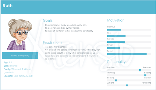 "Hilsen Tavla" or "The greeting board" is a product designed to help those afflicted by dementia establish or maintain a relationship with those close to them. It does this by showing reminders of who their loved ones are and what they care about through a video with a short greeting from the person in question as well as a written description of them,