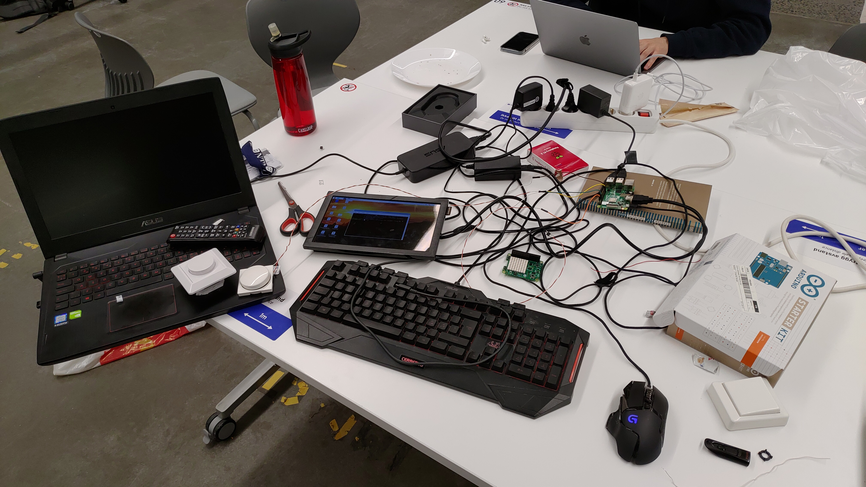 The board itself was created with a laser cutter, while the display uses a Raspberry PI in order to play specific videos when a picture is pressed.