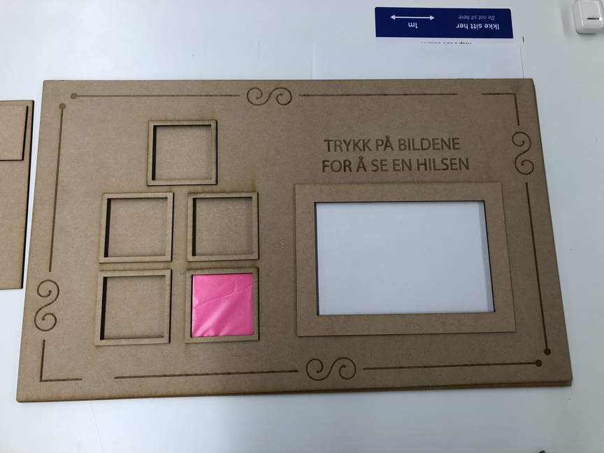 Each picture has a button behind it, which is pressed into the button, making it react when the picture is pressed, sending a signal to the Raspberry PI.
