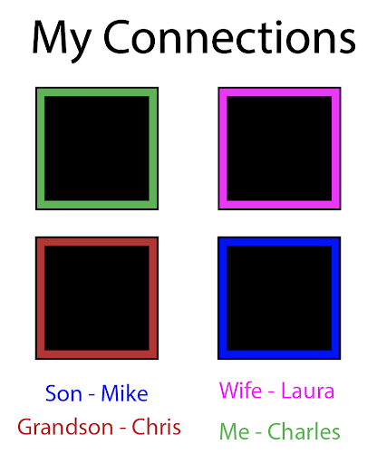 If the user touches a picture, they will be shown what their relationship with the person is as well as some information about them.