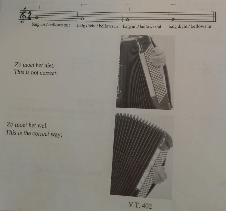 Figure 1. Picture taken from the pedagogic method book "Trekkentocht" by the Belgian Ivan Smeulders (2005, p.6). In this illustration, the correct and incorrect way of bellows technique is shown.
