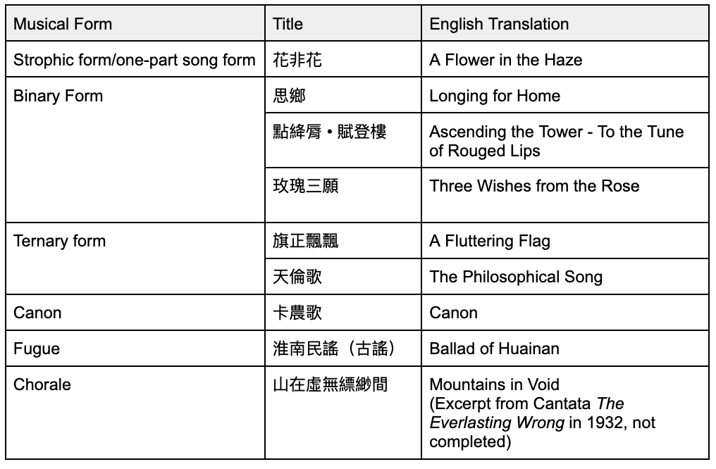 This song was composed according to modern poetry. It has a lot of freedom in terms of rhetoric ideas. In an earlier recording, there was Tempo rubato and even specific diction requirement to stress the syllable. Huang combined varied harmony, tempo, and volume to create different musical atmospheres, helping listeners better imagine the emotions conveyed by the poems or the scenes described in the poems.