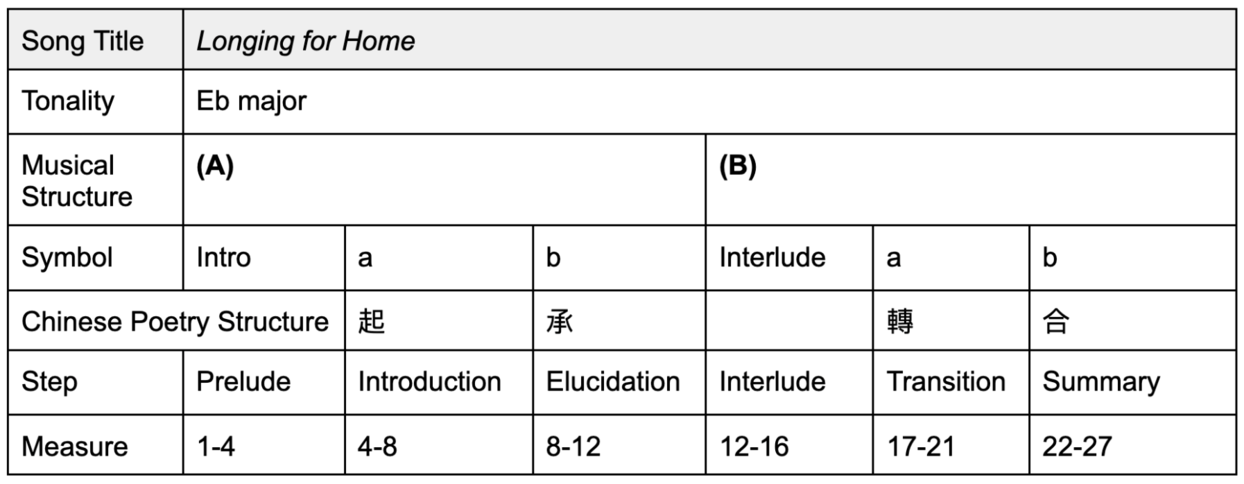 Below is a summary of the poetic structure in relation to musical forms for a better explanation.