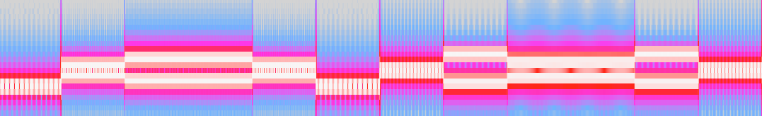 This way, a simple two-dimensional array with different sampling rates is enough to write any combination of harmony and rhythm. The duration of each sample has to be equal to the shortest note in the notated composition. For instance, if a triplet eight-note is the shortest value in a piece, three triplet eight-notes of the same pitch mean a quarter note in this notation. Musical rests occupy space in a matrix as elements of an array marked “undefined”. Their durations connect similarly.