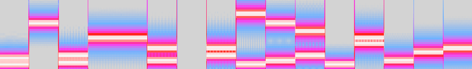 In physics, two sinusoidal waves of the same frequency, and in the same phase, when superimposed with each other are perceived as one frequency of the same pitch, but with an amplitude equal to the sum of the amplitudes of these frequencies. On a more general level, this phenomenon is described by a family of Fourier transforms, which allow the decomposition of any waveform to a set of sinusoidal waves. In my notation, the loudness of frequencies is notated in a similar way - by applying a number of frequencies with the same pitch located on the same sample. The softest frequency in a notated piece should have an amplitude of 1 and each louder frequency should have higher amplitudes marked accordingly.