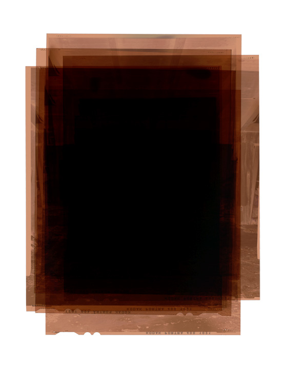 The image of decay of the ruined house is repeated like traumatic memory overplaying itself. It becomes unrecognizable, an abstraction of film artifacts and blacks veils of color. As with “Photographing Allness” the artwork was made using the aesthetic device of void within composition. By giving the viewer space to project into the piece and respond from it an active collaboration with the viewer is created, as well as a freedom from the image and site, the particular and objective instance represented by the photographic image, giving an escape from the decaying house.