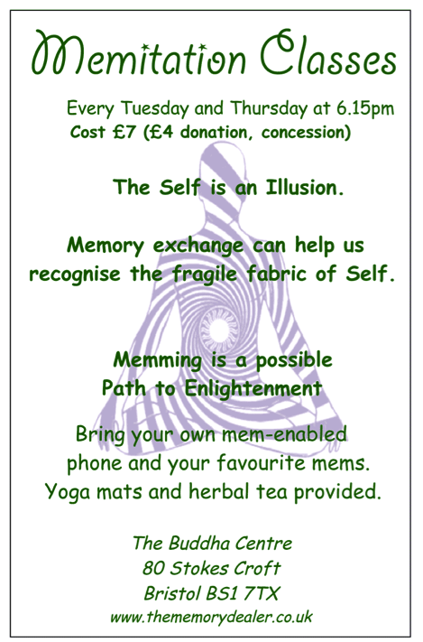 Figure 3: Memitation Classes. One of the flyers that could be found around the city. TMD Iteration 4, Bristol, May 2013.