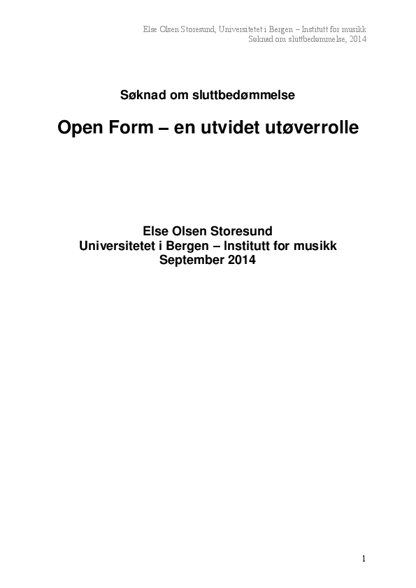 Open form is a designation on a type of composition that is in some degree open. It is also a term in relation to understanding a genre. This means that I do not include for example Bach´s Die Kunst der Fuge (circa 1740), but Stockhausen´s Aus den sieben Tagen (1968) could be included. This project, however, is centered around the composers from The New York Scool, and composers related to The New York School: Christian Wolff, Pauline Oliveros, John Cage, Earle Brown, Morton Feldman and Cornelius Cardew. An Open form composition is graphic, text- or number-based. It may also be a combination of these three notational techniques and/or in combination with conventional staff line-notation.