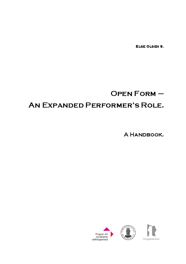 Open form is a designation on a type of composition that is in some degree open. It is also a term in relation to understanding a genre. This means that I do not include for example Bach´s Die Kunst der Fuge (circa 1740), but Stockhausen´s Aus den sieben Tagen (1968) could be included. This project, however, is centered around the composers from The New York Scool, and composers related to The New York School: Christian Wolff, Pauline Oliveros, John Cage, Earle Brown, Morton Feldman and Cornelius Cardew. An Open form composition is graphic, text- or number-based. It may also be a combination of these three notational techniques and/or in combination with conventional staff line-notation.