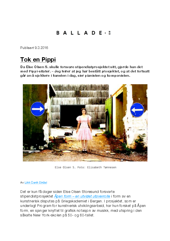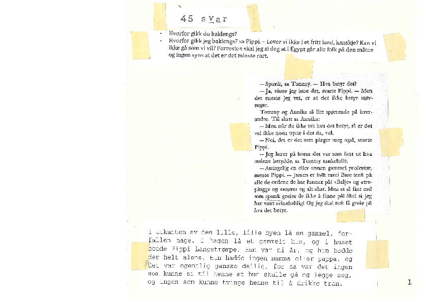 With the deepest respect to the committee and the work they´d been doing in their assessment, 45 answers were predetermined for the examination. All answers were quotes from Pippi Longstocking, Astrid Lindgren´s strong figure, who carries a whole culture on her sheer arms. The quotes are meant to be representative to the research done, and at the same time a comment to an era in music and art history.