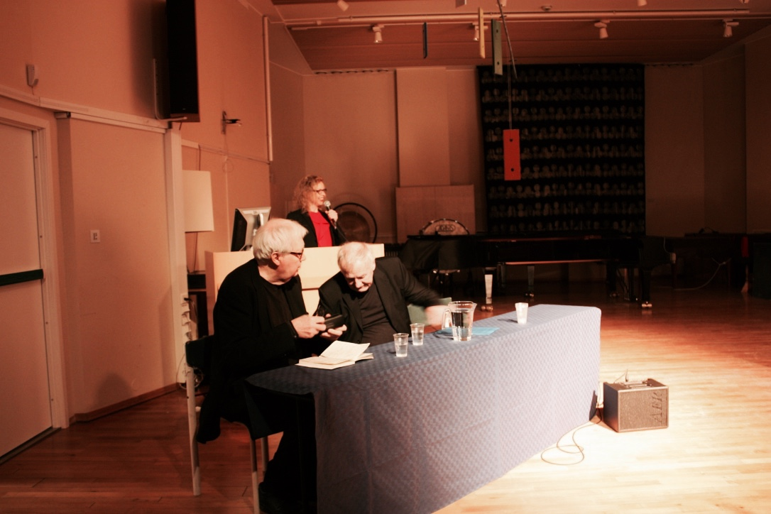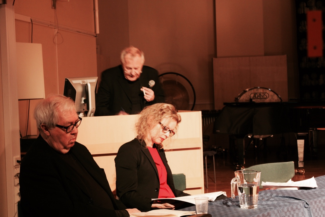 Einar Nielsen was the third opponent to examine the candidate, and his interpretation of his role was to enter it with an additional layer for the audience to interpret. He entered his soap box, asked his questions and knew he would not get the expected answers. What happened was that he lit up a cigarette. This is a clear violation of the codex for a Norwegian concert hall. In fact, it´s a clear violation for anywhere inside a public Norwegian building. The staff who didn´t see this act started to get worried about the smell of fire, while the audience seemed to be relieved from some of the seriousness present in the room. If the comment from Nielsen was about him actually breaking the carved in stone-rules, or if it was the smoke itself from the cigarette, will be unspoken of in this setting, leaving any further interpretation of this act to the audience. To have a glimpse of Einar Nielsen´s smoking event, see slide show below.