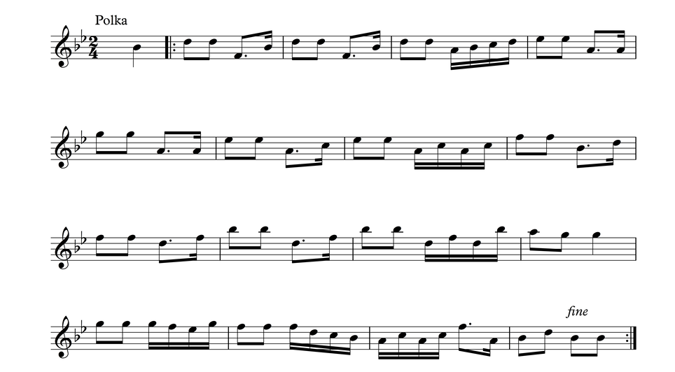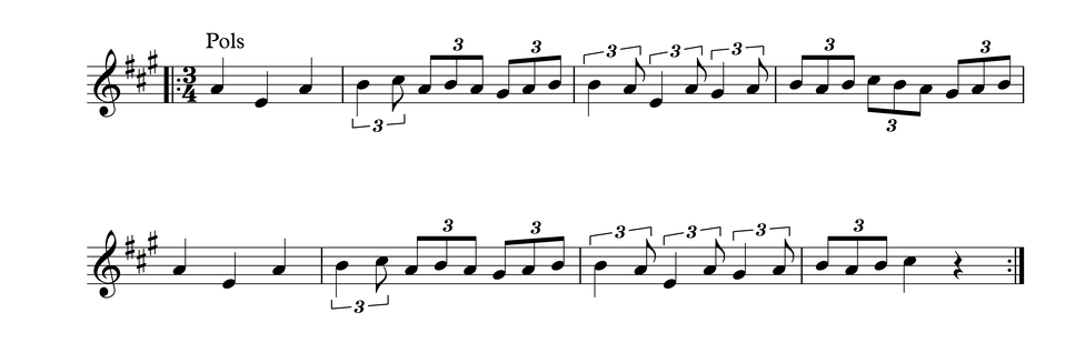 In the following four examples, you will see and hear examples of the basic dance rhythms that I base my work on. The tunes don't have any identified composers that I'm aware of.