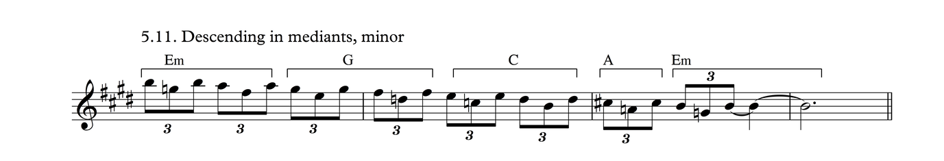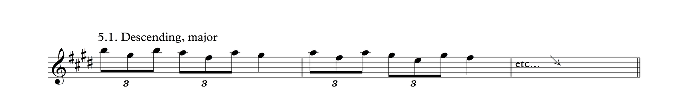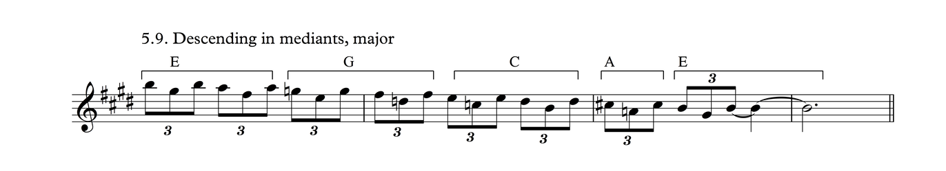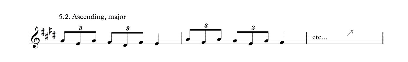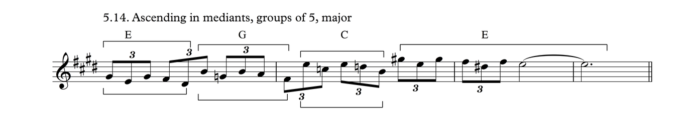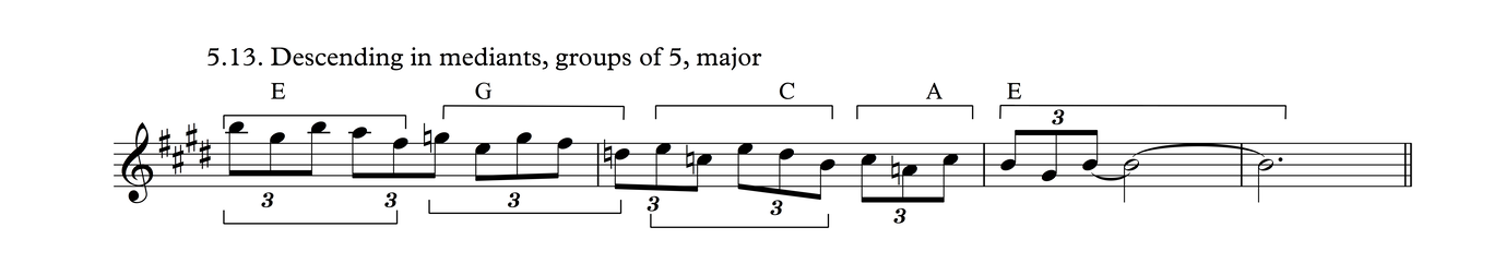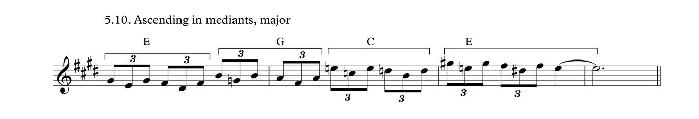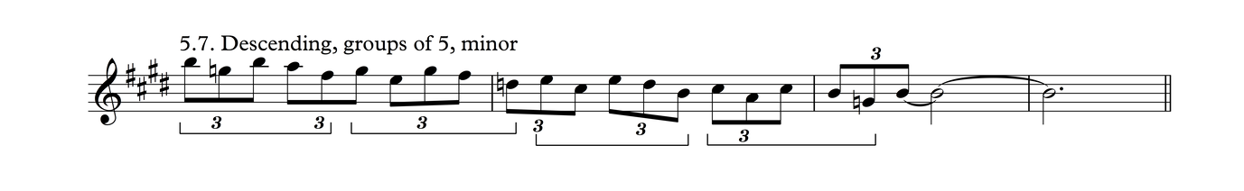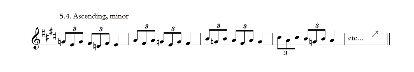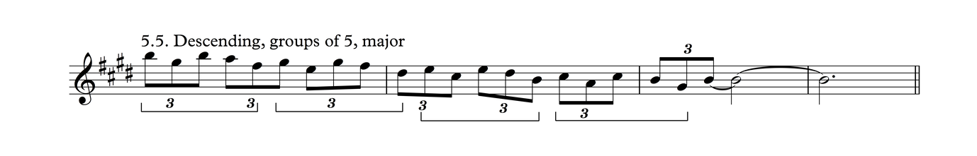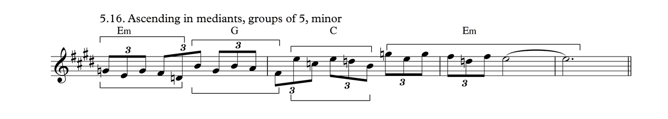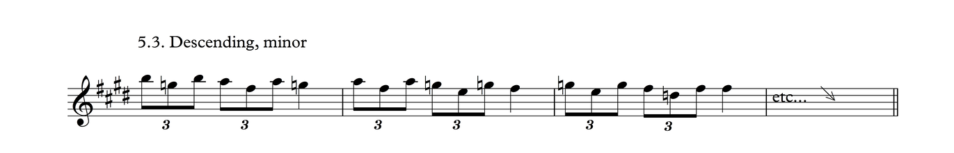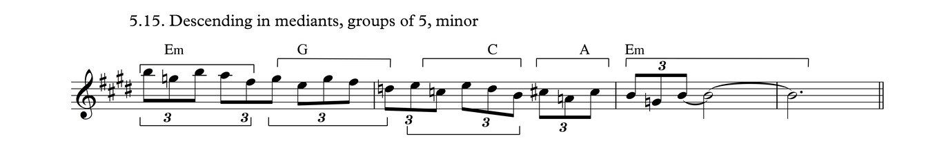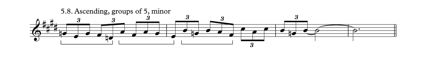 This is the same melodic profile as in Process 4, But grouped as triplets over a 3/4 meter. I think there's a good chance this may be the most common phrase in traditional tunes in my part of the world.