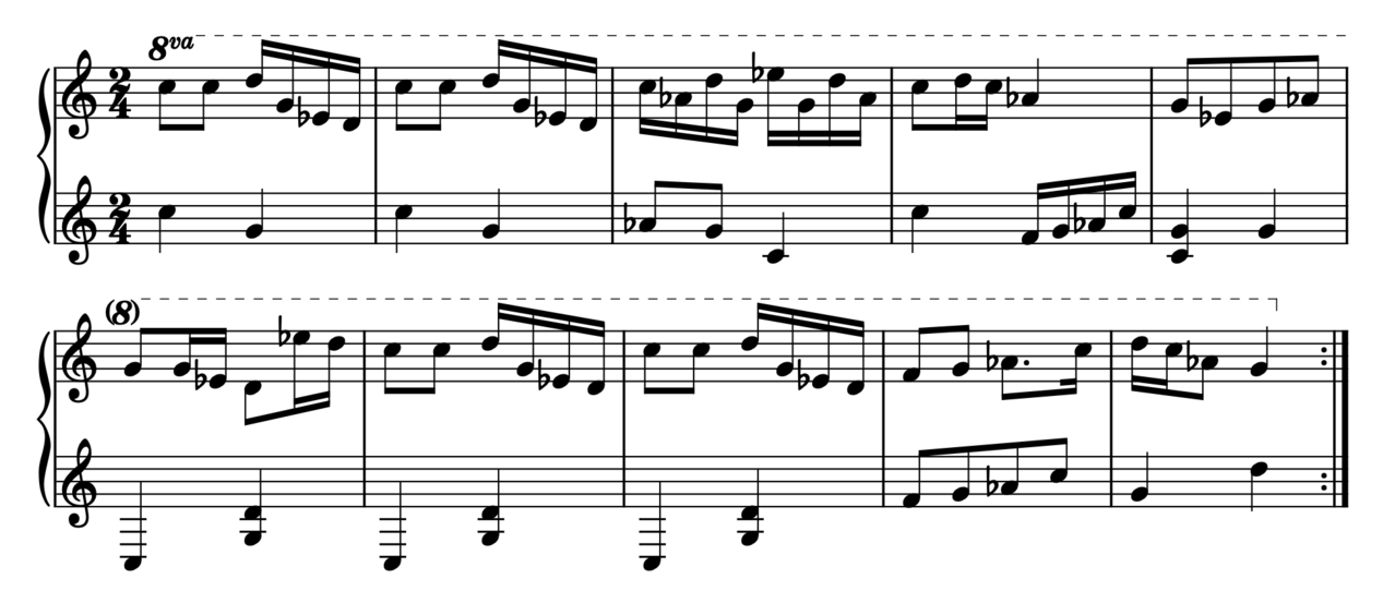 Taking a closer look at the score, on a microscopical level, we can find much more elements taken from the original piece. These details were also discussed during our meetings.