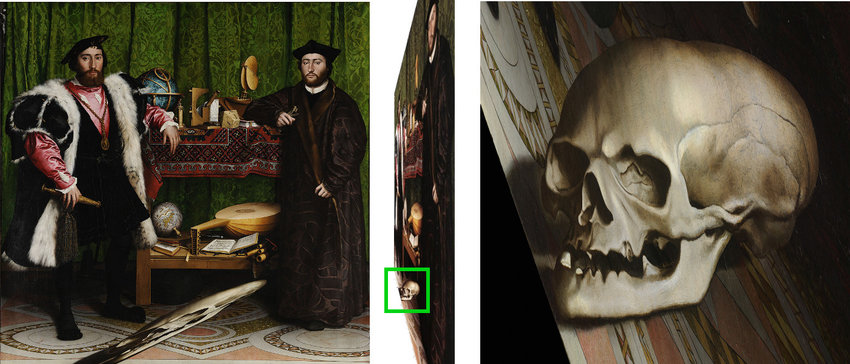 Hans Holbein - The Ambassadors - first known example of an anamorphosis at the visual arts