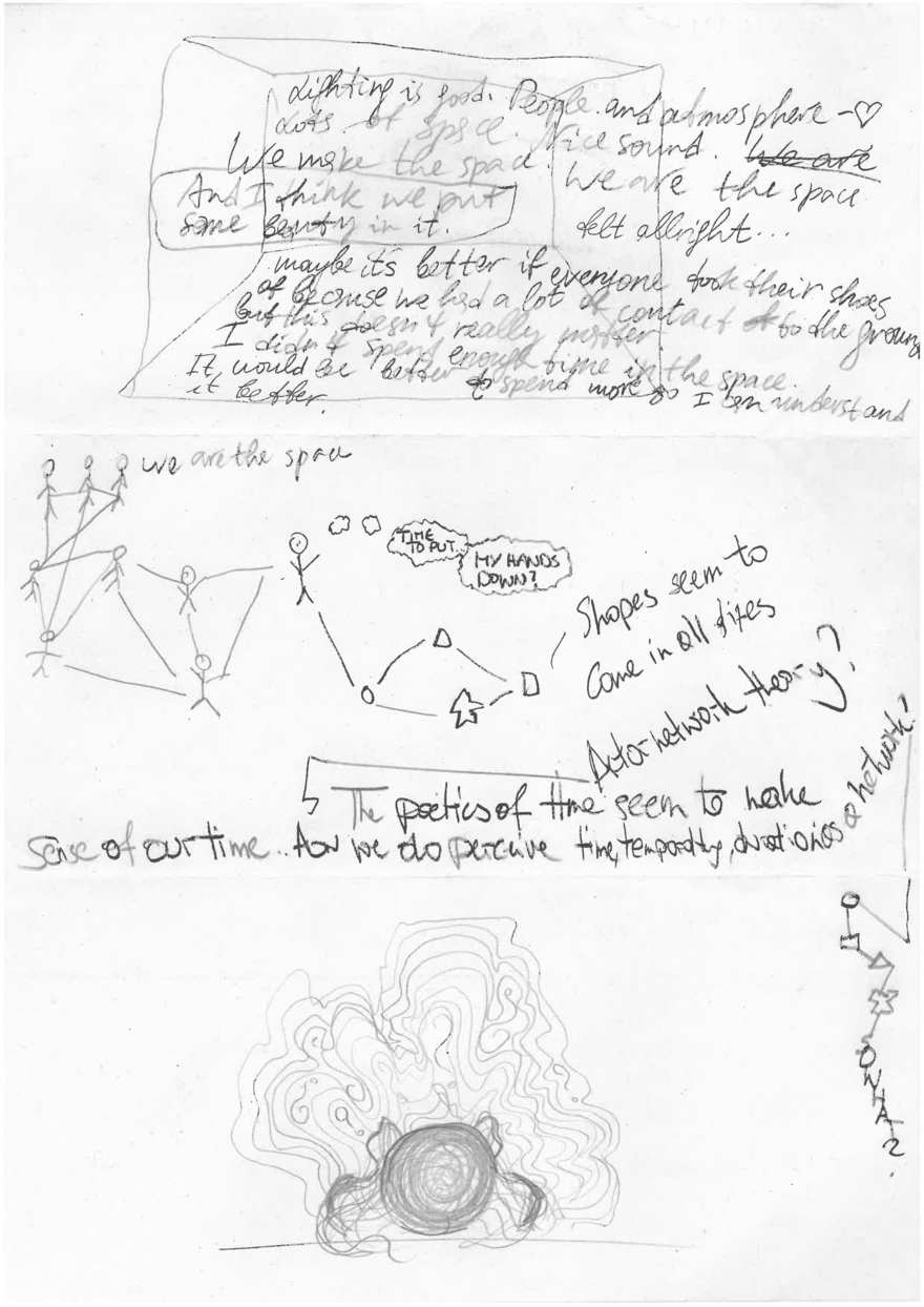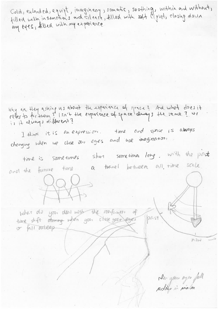 The possibility to together engage in a reflection process but not in order to agree, but rather grasp details of indivdiual trajectories inside the common experience, proved a really good way to prepare us participants to also share thoughts in the follwing discussion.