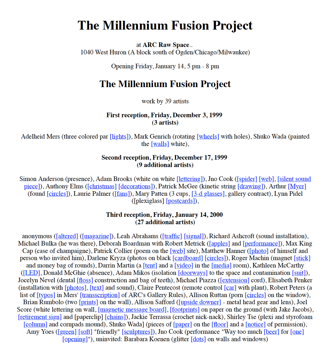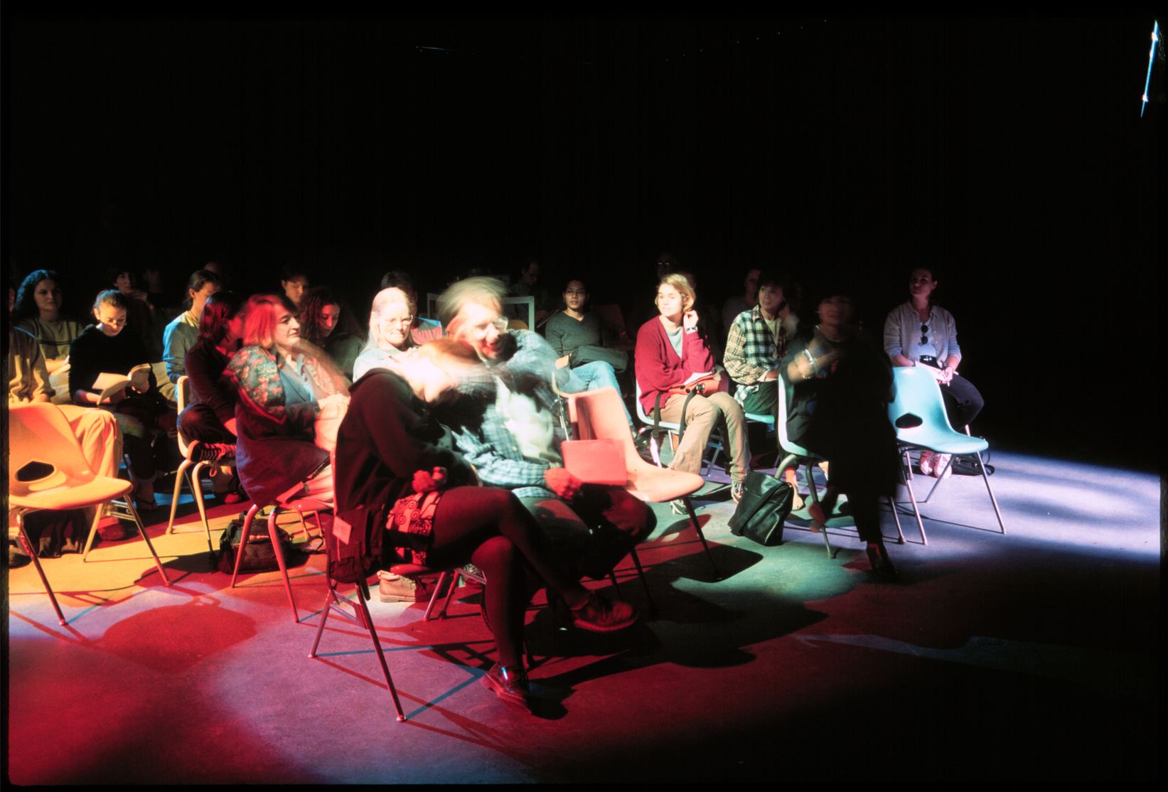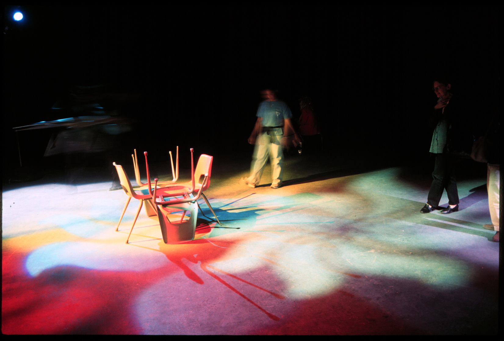 My first light piece, in 1994, surprised me by being participatory in unexpected ways, beyond the intended ability to move within it. Drinks were spilled the first time I exhibited it at Tough Gallery in Chicago, and at an exhibition at the Museum Kunstpalast in Düsseldorf, Germany, an enterprising organizer installed a disco ball next to it, for the opening party. Starting in 1998, light installation became sites for invited and curated events, and finally the premise for an exhibition.
