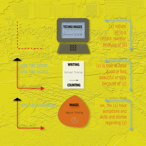 The diagrams above, layered with photographs taken at large, public gatherings in Chicago, were presented at the Flusser Archive when it was still in Cologne (now in their collection), in Berlin, Prague, and the US. Vilém Flusser's work helped me gain a first perspective on why diagrammatic work was important to me, and how it intersects with technology and socio-political concerns. I wrote about this in the text linked to the right, which has since been republished in an anthology, "Understanding Flusser, Understanding Modernism", 2022. Connections to thinking about art world contexts were also considered here.