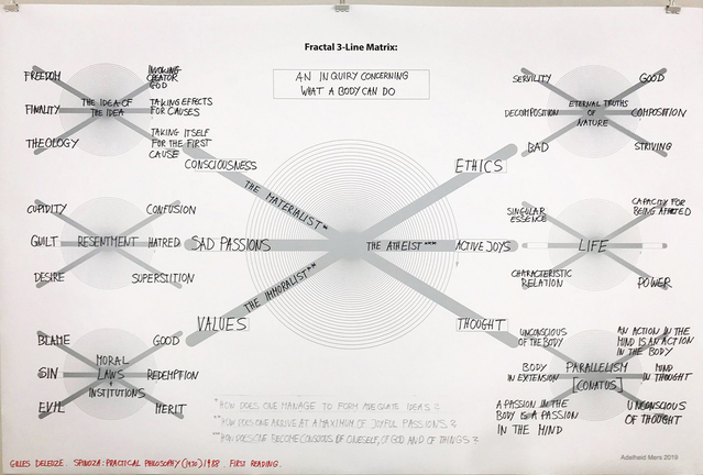 Reading and taking notes has always been part of my practice. Diagrams were initially reserved for teaching. When they migrated to the forefront of my work, I felt reluctant about it. Reading - and diagramming - Vilém Flusser's works helped me to make sense of this inclination. Drawing on my previous installation works, I began to understand diagrams as spatial entities.