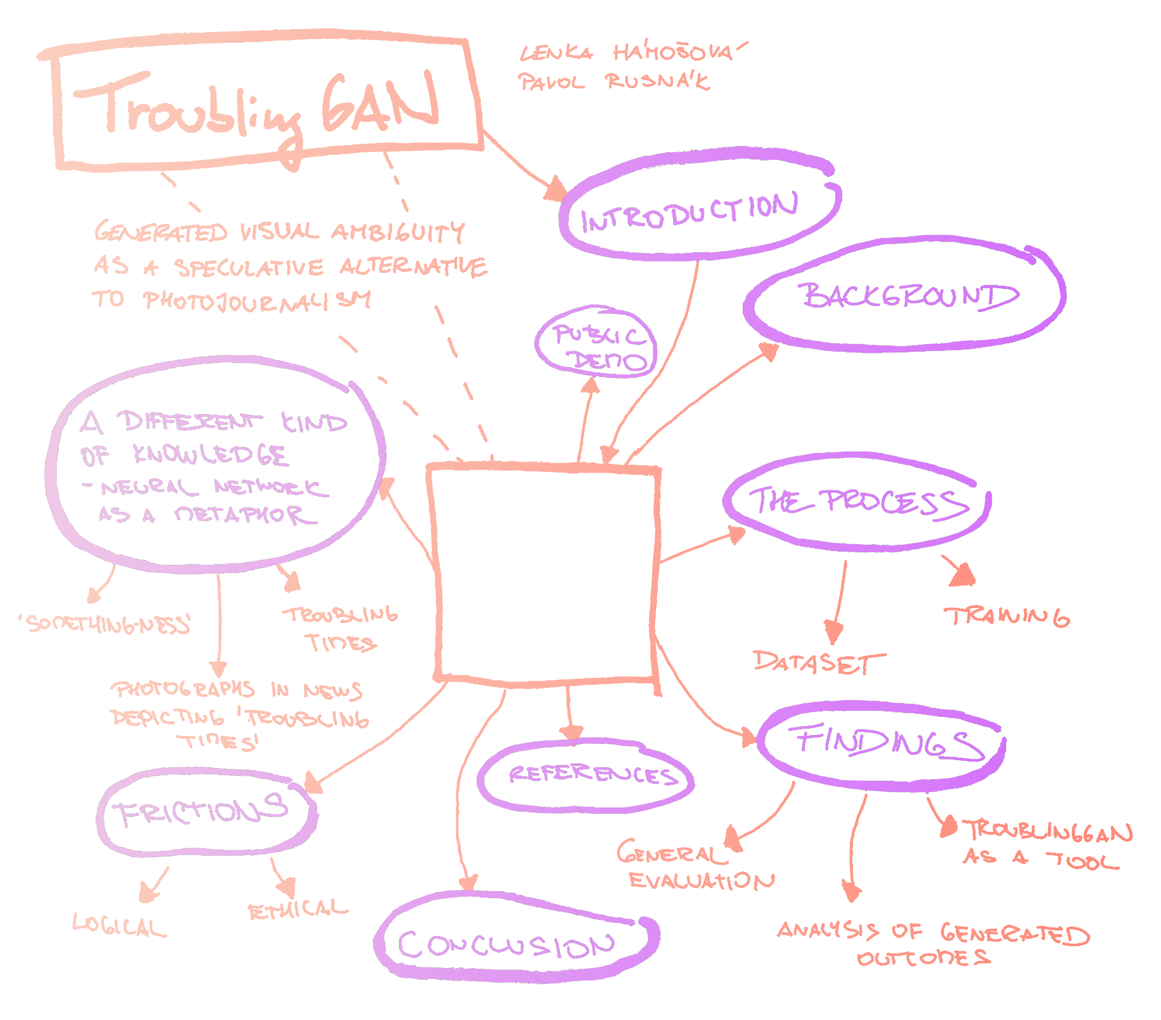 This exposition documents artistic research that engages with generative neural networks and artificial intelligence-driven visual synthesis, the goal being to challenge the limits of the research and question the value of the generated visual outcomes. We present here our experiment with a customised StyleGAN model. In contrast to its utilisation by computer scientists, it has been trained on a heterogeneous dataset, voluntarily exposing the generative neural network to failure while focusing on the unexpected moments of surprise that arise from such a process. Led by the critical thoughts of The Nooscope Manifested (Pasquinelli and Joler 2020), this experiment questions what kind of knowledge generative neural networks produce, whether they could change one’s perspective on studied objects (the dataset) and whether they could function as a viable tool for artistic research. The observed object in this project is the concept of ‘troubling times’ (inspired by ‘Designing in Troubling Times’, the theme of the 2021 Uroboros Festival) — rapid socio-ecological changes caused by shifts in global economic, political and technological power and the subsequent series of troubling events, including the COVID-19 pandemic, violent conflicts and environmental catastrophes. StyleGAN is used as a pattern-recognition and knowledge-production tool to create an intuitive understanding of what this ambiguous term ‘troubling times’ actually means today. During the experimentation process, multiple unforeseen moments and twists happened, offering valuable insights into the nature of synthetic media, generating ethical questions concerning the use of generative neural networks and spawning new propositions for further research.