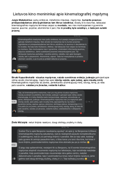 nu šiaip kalbant apie kiną, tai visiškai normalu, kad yra kinas aukščiau. Bet jeigu kalbant apie šokio kiną, tai tada gal ir turėtų būti ta lygybė, bet gal aš nesu patyręs, kad šokio filmuose yra nelygybė. (žiūrėti minčių dokumentacija psl. 20)