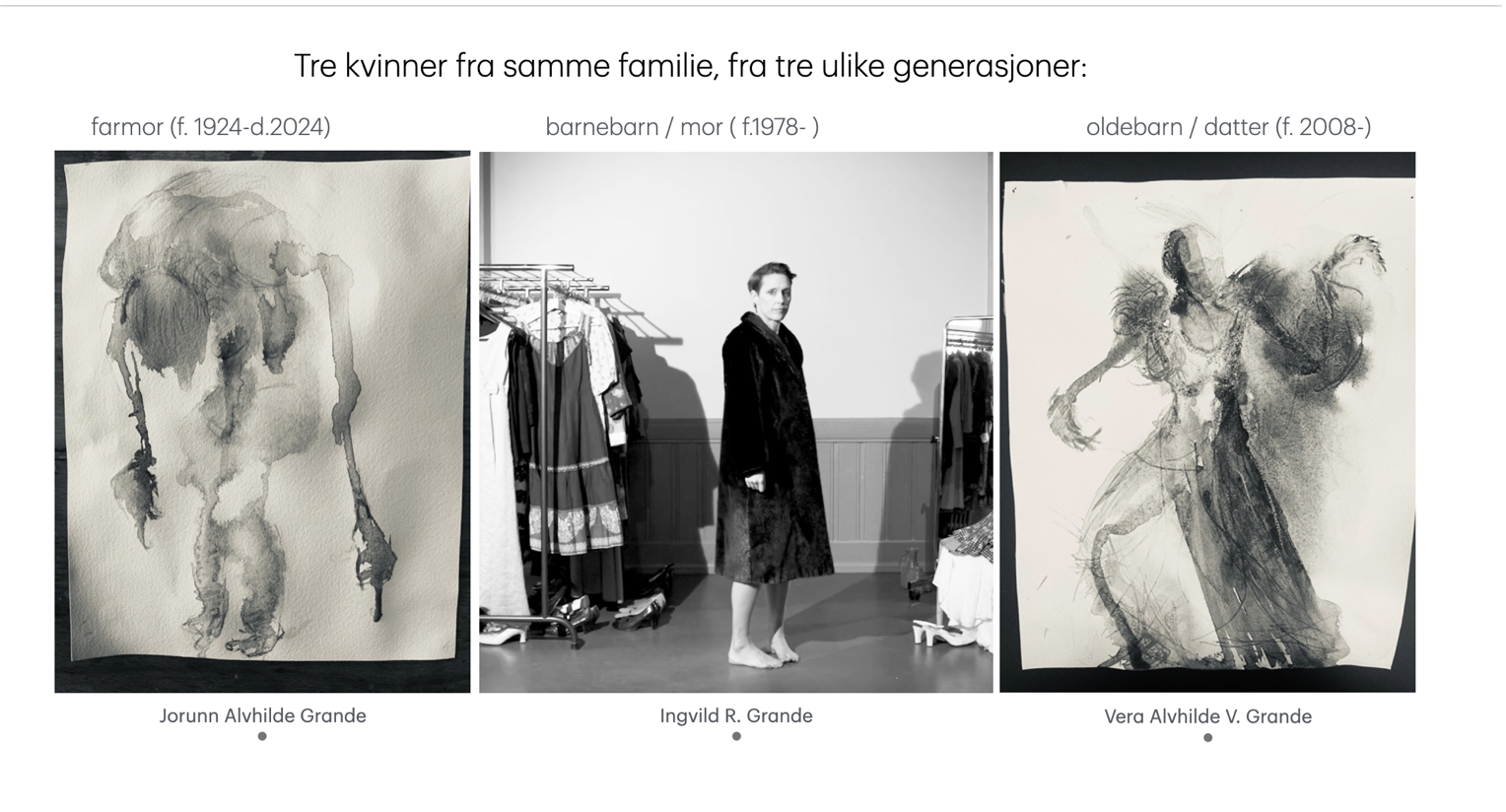 With the clothing collection inherited from my 98 year old grandmother, Alvhilde as a starting point, I want to investigate which stories can be deposited through clothing, and how this can influence the process of costume making. Central to the study will be two women with the same name (Alvhilde), from the same family, from two different generations, with two different bodies. The examination of the personal material forms the basis for a scenographic installation with contributions from two generations of audiences and their own clothes and stories.