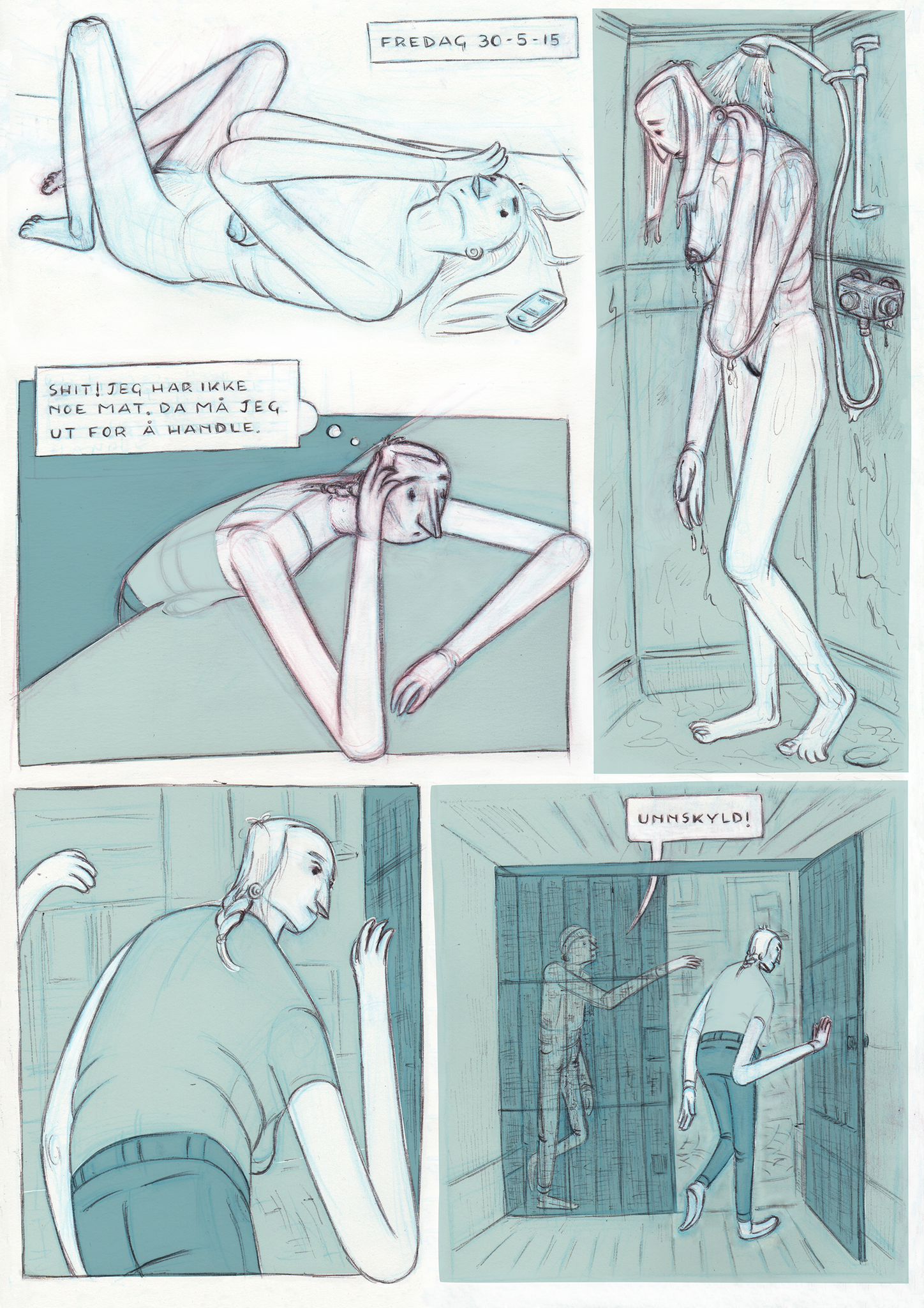 During the period of four years of artistic research I will utilize my background as an illustrator and animator. In addition to my artistic practice, I also have a background as an art and film theorist that will contribute to my reflection regarding the methods and processes in artistic research. The project will involve both preparing a third comic book within an established feminist comic book universe, called "Fragments" as well as developing one of these stories into an animated short film. The comic will be printed in a risograph technique as a book of roughly 32 pages, and the film has an intended scope of 7 minutes. / I dette kunstneriske utviklingsarbeidet vil jeg utnytte min tredelte bakgrunn som illustratør, animasjonsfilmskaper, og kunst- og filmteoretiker. Prosjektet vil innebære å både utarbeide en tredje tegneseriebok innenfor et etablert feministisk serieunivers, kalt «Bruddstykker», og dessuten: å videreutvikle en av historiene i denne del 3 av tegneseriebøkene til en animert kortfilm. Tegneserien vil ha et omfang på 32 sider, og filmen har et tiltenkt omfang på 7 minutter.