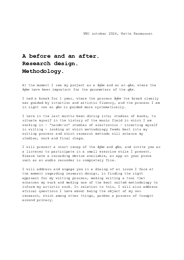 I have been functioning primarily as a musician in free improvised music for the last 10 years. I want to ground myself as a composer in my artistic research project, and by doing so see how this will affect my role as a musician.