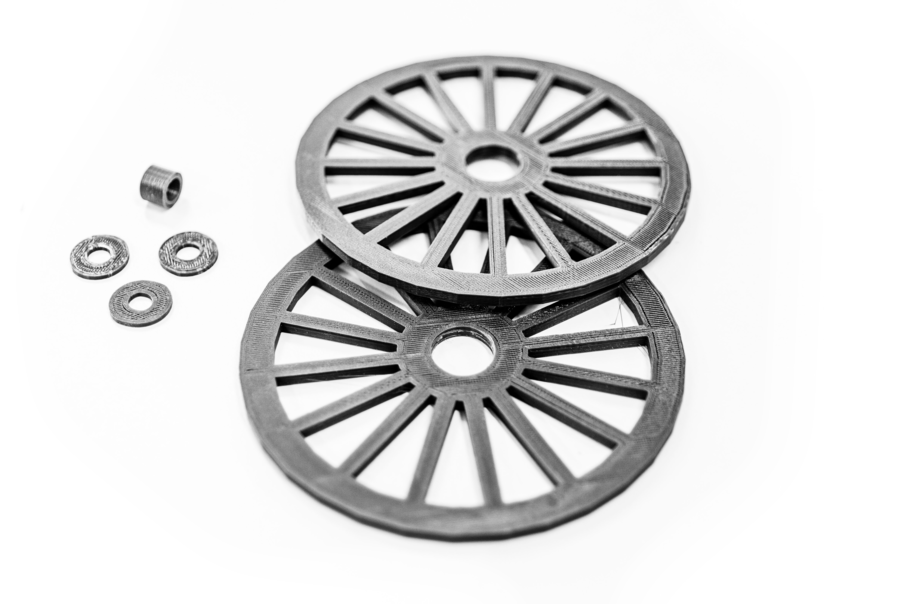 The printing cylinder and ink rollers, in turn, in addition to starting from PVC tubes, also received iron rods inside which 6 round pieces made in 3D printing with the same diameter as the inner part of the PVC tubes were placed. These parts were designed to support the PVC tubes, since the material is slightly malleable. In lack of specialized cutting tools, eg. a laser cutter, these parts were produced on an Elegoo Mars FDM 3d Printer with ABS plastic filament.