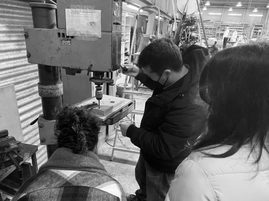 The XT-Press was built in MDF wood and PVC pipes from a process that can be divided into 3 phases, namely: parts research and fabrication, press assembly and test printing and press refining