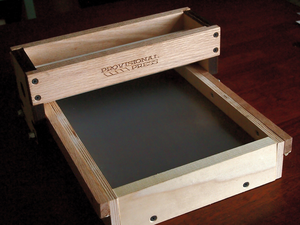 The Provisional Press is a letterpress printer sold in kit form or already assembled, it was created by Steve Garst and his wife Liz in 2020. The print kits are manufactured in America by a small team. During the pandemic the original Provisional Press was redesigned - in conjunction with Scott Moore of Moore Wood Type - so that it could be marketed in kits to meet the needs of universities and their students forced to deal with social lockdown. The kit is centred on the creation of an affordable printing press, made with high quality parts that will last for thousands of prints if used correctly. Although the original press has been reconfigured the original aim of creating an affordable desktop press has been maintained. The Provisional Press does not intend to replace the more traditional printers, but mainly to allow people to have access to print more economically and anywhere.
