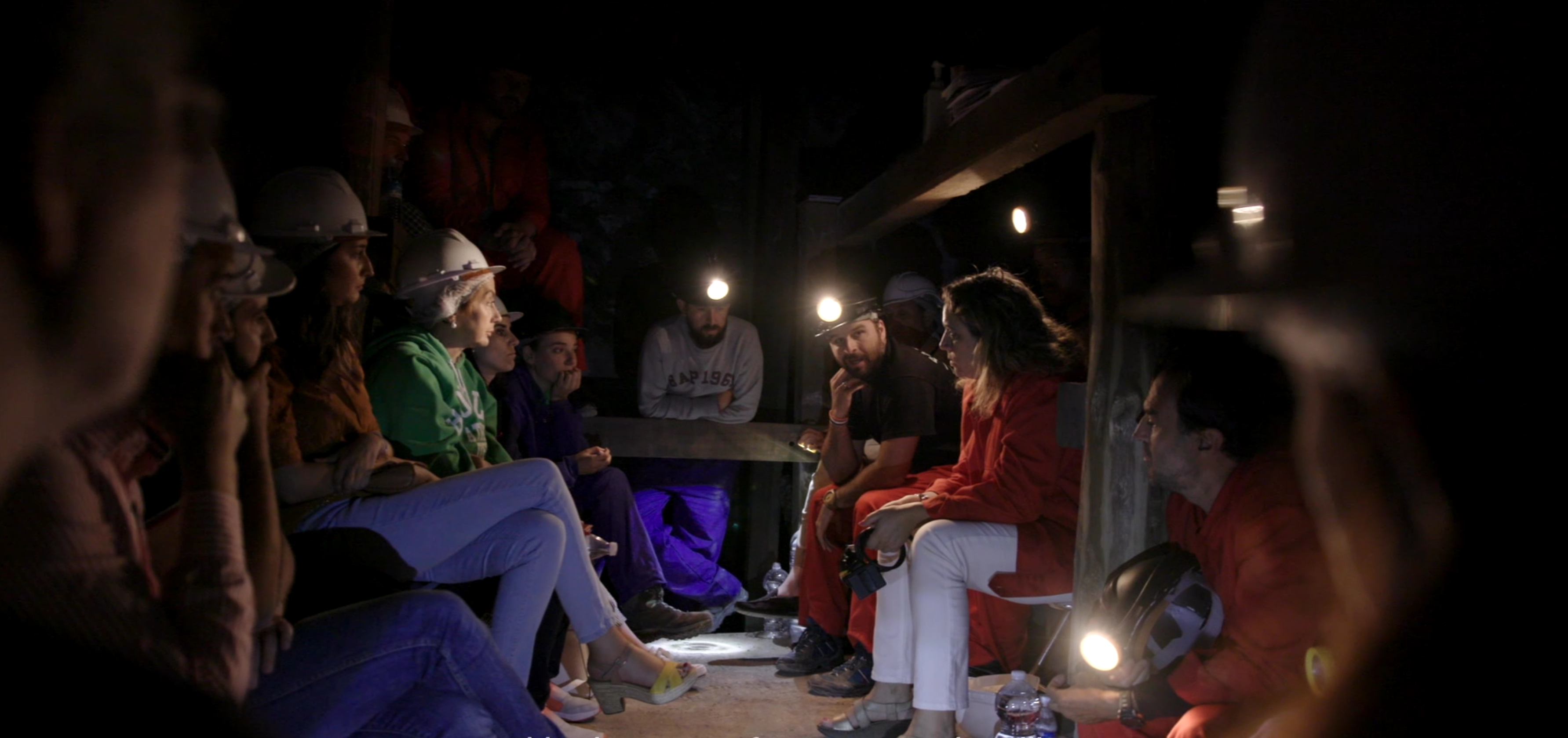 The entanglement of participants, community, media and politics creates a metamorphosis in the project. Some of the participants feel that presenting their lockdown as a documentary film diminishes the realness of the social movement they have now started in the area. They all agree that the film is the initial force of the lockdown, but now the lockdown has been transformed into something else. At this point, the creative part, loosely understood as a homage to the struggling mining generations, and the social part (that is, the intention of turning the homage into present action), begin to take parallel paths, but still coexist. This coexistence becomes increasingly entangled. Several newspapers reflect this transformation in headlines that read as: “what started as a documentary film project turns into a social movement in Almadén".[43] As the days progress, the basic frame of “as if it was a strike” starts being stretched. As one of the locked down participants expresses, “it is not clear for me whether this is a film about a strike, or a real strike”. While the real lockdown of the participants inside the mine engages the community into social action, the engagement on the surface further inspires and moves the participants underground. The sense of social apathy, the negativity, the “everybody sees the village dying and nobody does anything” transforms into social action and to a sense of unity and community similar to that of 1984. There is a widespread feeling in the community that something real is happening. The representational aspect of the project starts dissolving. Rather than representing of the past, participants start identifying with the past. As one of the participants says, “I’m starting feeling like a real syndicalist”. In the political meetings around the shaft, the participants demand concrete political commitments.[44] Whereas the documentary film project appropriated aspects of the mining past into the creation of the event, the participants now ‘appropriate’ the documentary film to demand political commitment. Moreover, they start considering the possibility of staying in the mine beyond the agreed duration of 11 days if those agreements do not come. In the beginning, they say it in passing, but gradually in more serious terms.