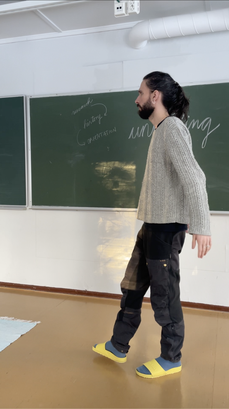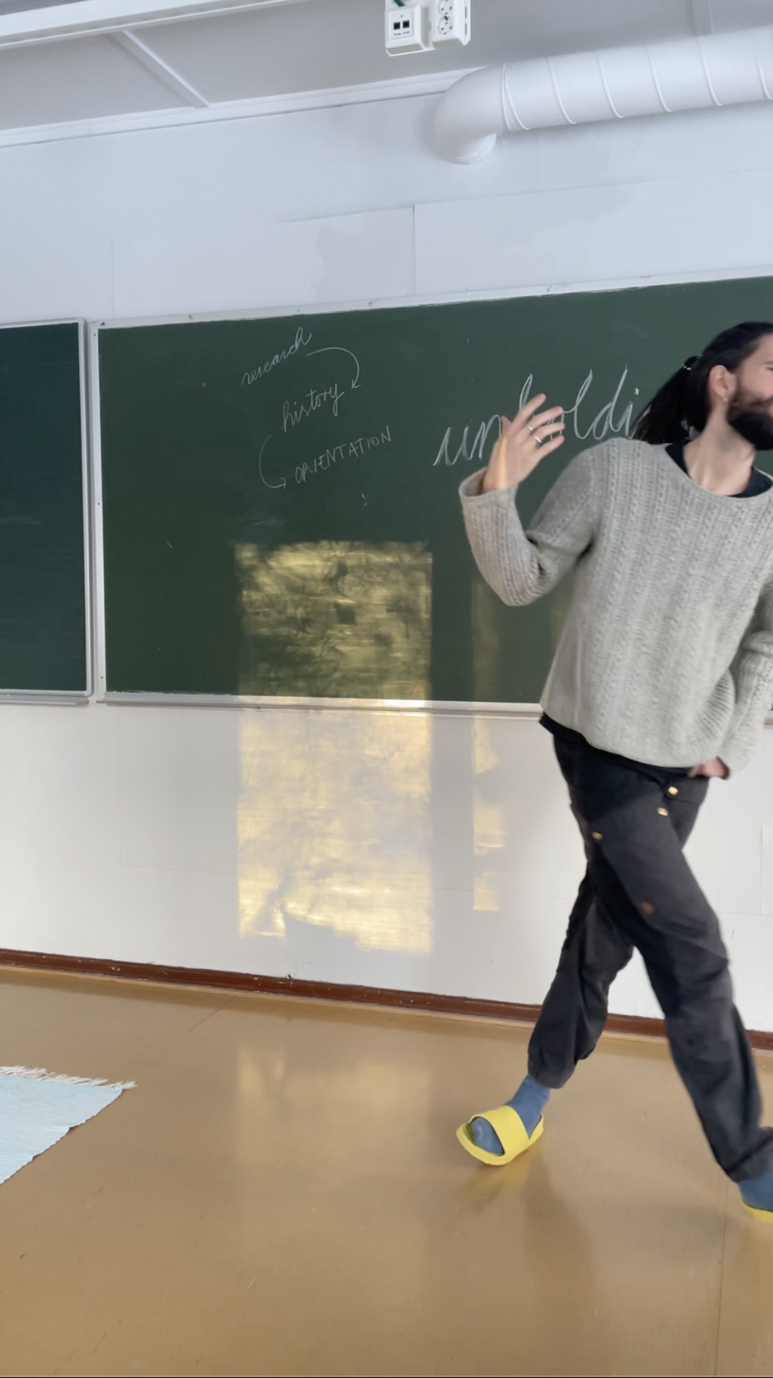 the question goes something like, "how do i treat everything that we are doing as a somatic experience of the thing itself," which is simultaneously a philosophical (analytic) and a physical (experiential) question. i'm thinking of angela davis1 who once said something along the lines of, i am fighting for the kind of feminism that works at the heart of contradiction. i am thinking of karen barad2 who wrote, "Thinking has never been a disembodied or uniquely human activity. Stepping into the void, opening to possibilities, straying, going out of bounds, off the beaten path–diverging and touching down again, swerving and returning, not as consecutive moves but as experiments in in/determinacy. Spinning off in any old direction is neither theorizing nor viable; it loses the thread, the touch of entangled beings (be)coming together-apart. All life forms (including inanimate forms of liveliness) do theory. The idea is to do collaborative research, to be in touch, in ways that enable reponse-ability."