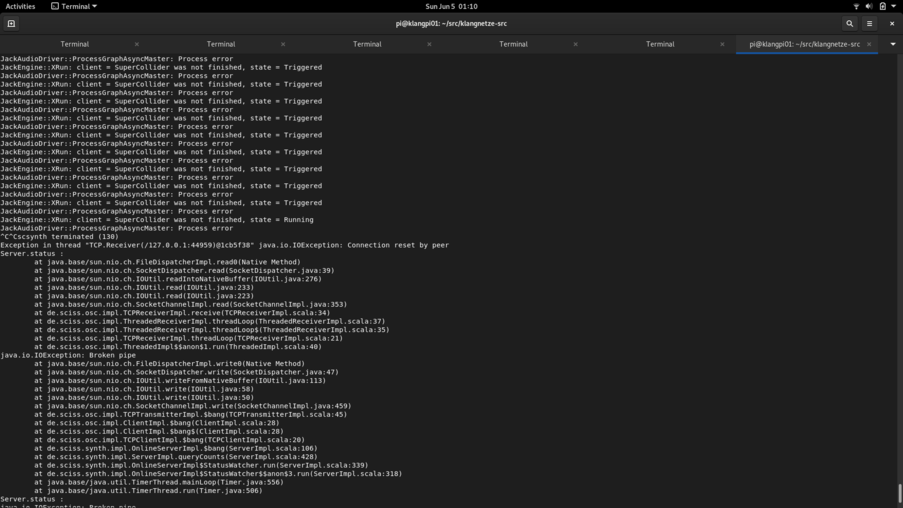 That means, I have to rethink the piece in a very simple manner, something that runs within a single SynthDef basically. It's kind of sad because I thought the node-to-node communication could have been very interesting, but perhaps this remains an approach to be used elsewhere on a Pi 4 based project. I’m going to stop for today, after updating various libraries to avoid disk I/O, updates that are no longer useful as I will have to abandon SoundProcesses altogether.